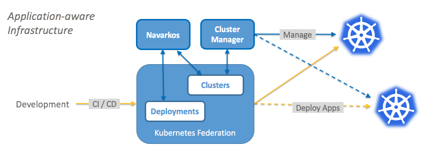 Второй проект — предварительная версия (technical preview) набора инструментов для управления распределённым кластером под названием Global Multi-Cluster Management. Предназначение утилит от Oracle — быстрое создание и автоматическое масштабирование облачных приложений, работающих в кластерах K8s, и обеспечение возможности миграции между облаками. В этом проекте, опубликованном в GitHub как Navarkos, используются родные механизмы Kubernetes Cluster Federation. Для сборки исходного кода Navarkos потребуются Go 1.8.x, Glide 0.12+ и Docker 17.05+.
